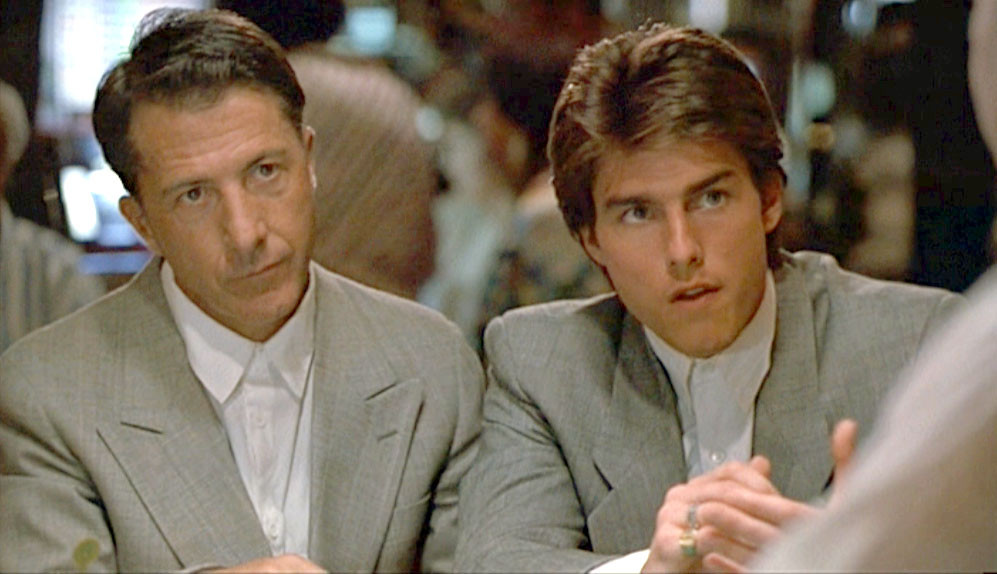 월브룩에서 찰리는 자폐증을 가진 형 레이먼드(더스틴 호프먼)를 만난다. 레이먼드는 뛰어난 기억력과 계산 능력을 가진 서번트 환자로, “Who’s on First?”를 반복하며 엄격한 일과를 고집한다. 찰리는 유산을 노리고 레이먼드를 호텔로 데려가고, 그의 태도에 실망한 여자친구는 신시내티에서 떠난다. 찰리는 레이먼드의 주치의 브루너에게 유산 절반을 요구하지만 거절당하고, 형의 양육권을 얻으려 여행을 시작한다. 레이먼드가 비행기를 무서워해 두 사람은 차로 LA를 향한다. 레이먼드는 매일 같은 TV쇼를 보고, 11시에 잠자리에 들며, 비 오는 날과 고속도로를 피한다. 여행 중 찰리는 레이먼드의 천재적 능력을 발견하고, 라스베이거스 카지노에서 8만 6천 달러를 딴다. 채권자가 람보르기니를 회수하며 찰리는 빚에 시달리지만, 돈을 갚고 수재나와 화해한다.