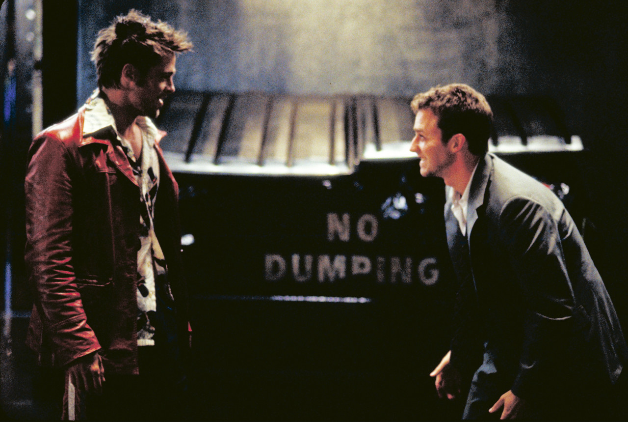 파이트 클럽은 1999년 개봉한 심리 스릴러로, 데이빗 핀처가 감독을 맡고 척 팔라닉의 동명 소설을 원작으로 했다. 이야기는 잭(에드워드 노튼)으로 시작된다. 그는 자동차 리콜 심사관으로, 비싼 가구들로 집 안을 채우지만 삶에 강한 공허함을 느낀다. 불면증에 시달리며 반복되는 일상에 지친 그는 어느 날 비행기에서 타일러 더든(브래드 피트)을 만난다. 타일러는 거부할 수 없는 매력의 거친 남자로, 규칙을 거부하고 본능적인 삶을 설파한다. 집에 돌아온 잭은 아파트에 불이 난 걸 발견하고 타일러에게 연락한다. 두 사람은 술집 밖에서 대화를 나누다 타일러가 “싸워봐야 네 자신을 알게 된다”고 말한다. 잭은 통쾌한 주먹을 날리고, 둘은 여태껏 경험하지 못한 강렬한 카타르시스를 느낀다.