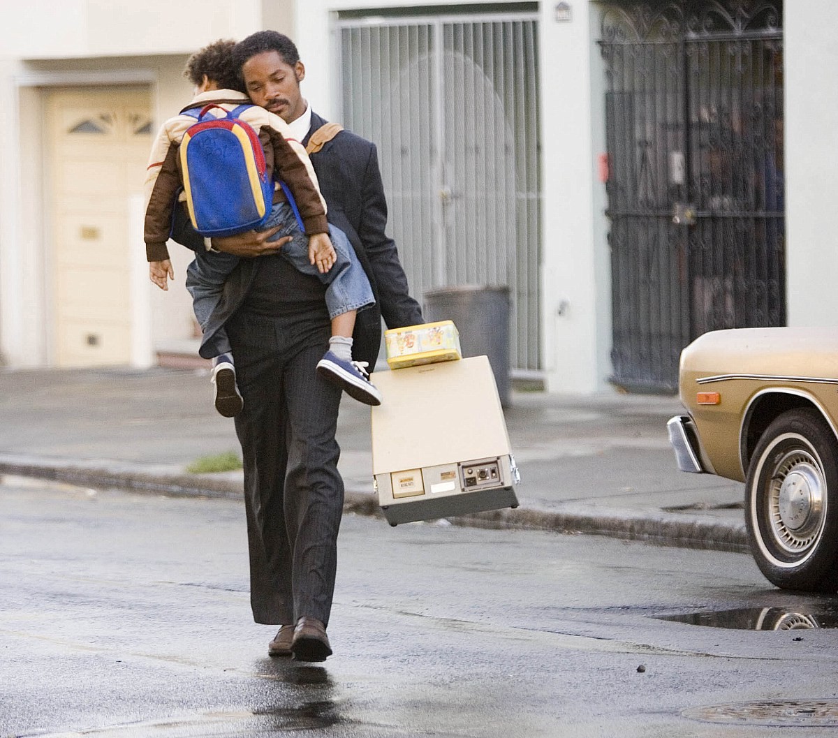 가장 기억에 남는 장면은 크리스가 농구장에서 아들과 대화하는 순간이다. 크리스토퍼가 농구 선수가 되고 싶다고 하자, 크리스는 "너는 나처럼 평범할 거야"라고 말한다가 이내 후회한다. 그는 "다른 사람이 안 된다고 해도 너는 너를 믿어"라고 정정하며 아들을 격려한다. 인턴십 동안 크리스는 뛰어난 성과를 낸다. 그는 고객을 끌어모으고, 동료들 사이에서 두각을 나타낸다. 하지만 생활은 여전히 힘겹다. 어느 날, 쉼터에서 쫓겨난 크리스는 지하철역 화장실에서 하루밤을 보내기 위해 문을 잠갔다. 아들을 품에 안고 발로 문을 막으며 눈물을 삼킨다.