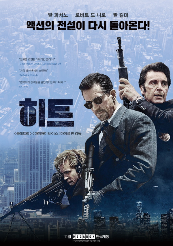 히트는 1995년 개봉한 마이클 만(Michael Mann) 감독의 범죄 드라마로, 로버트 드 니로와 알 파치노가 처음으로 같은 화면에서 대면한 역사적인 작품이다. 두 배우는 대부 2에서 함께 출연했지만, 서로 다른 시간대를 연기하며 맞붙지 않았기에, 히트는 그들의 첫 직접 대결로 기억된다. 이 영화는 단순한 액션 스릴러를 넘어, 범죄자와 수사관의 삶을 깊이 파헤치는 심리적 긴장감으로 가득하다. 로버트 드 니로는 냉철한 프로 강도 닐 맥컬리를, 알 파치노는 그를 집요하게 쫓는 형사 빈센트 한나를 연기하며, 두 배우의 강렬한 카리스마가 영화의 중심을 이룬다. 마이클 만 특유의 세련된 연출과 숨 막히는 총격전은 히트를 90년대 최고의 범죄 영화 중 하나로 만들었다. 로스앤젤레스의 밤을 배경으로 펼쳐지는 이 대결은 단순한 선악의 싸움이 아니라, 서로를 이해하는 두 남자의 비극적인 운명을 그린다.